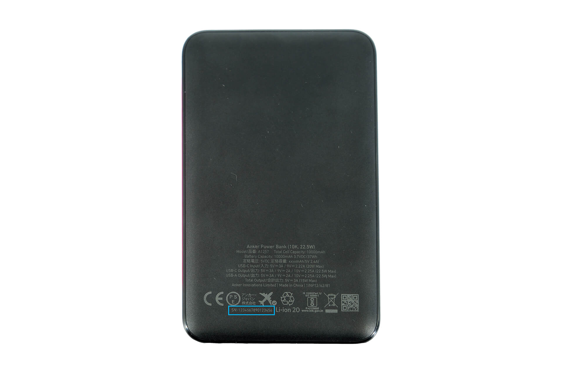 Check the product information on the bottom of the device to confirm it reads: “Anker Power Bank (10,000mAh, 22.5W)” with model number "A1257." See images below: